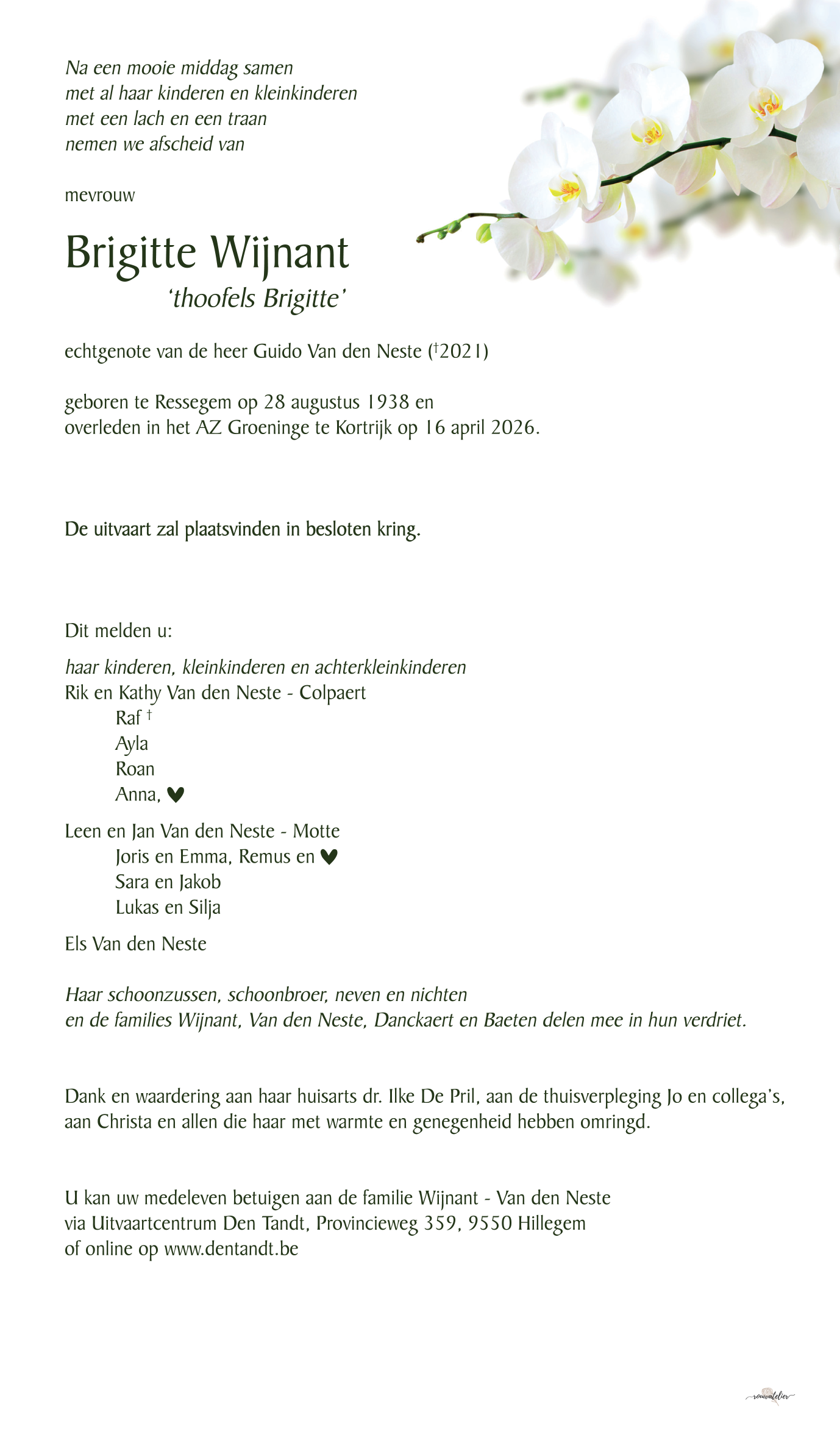De ceremonie zal in de strikte intimiteit plaatsvinden.