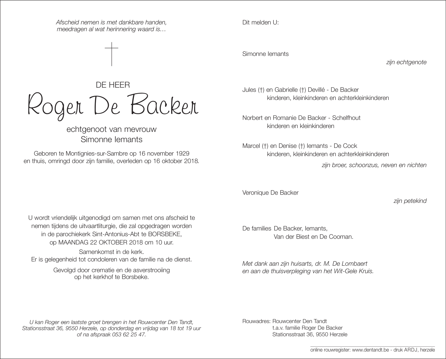Overleden te Borsbeke (9552) op dinsdag 16 oktober 2018 op 88-jarige leeftijd