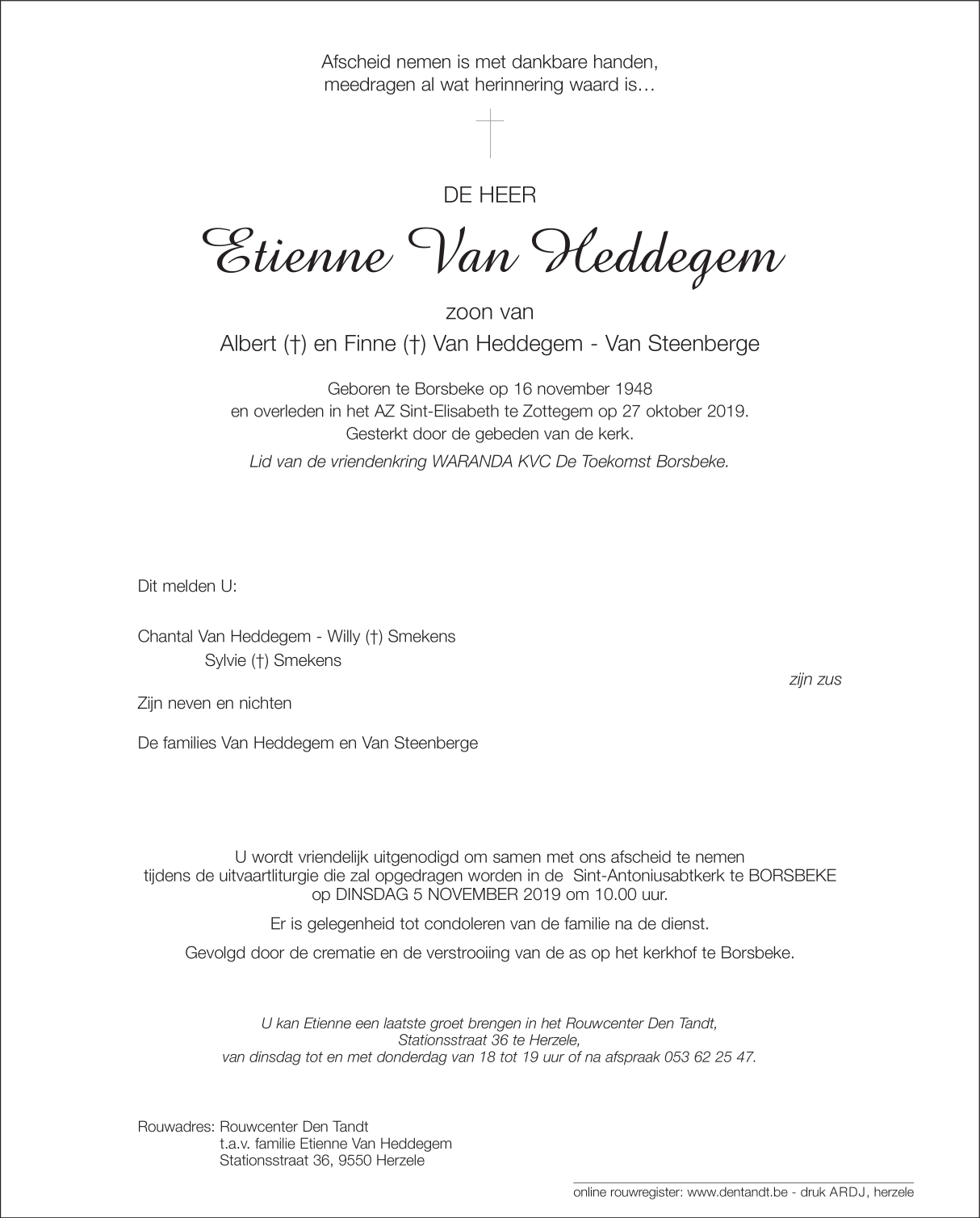 Overleden te Zottegem (9620) op zondag 27 oktober 2019 op 70-jarige leeftijd