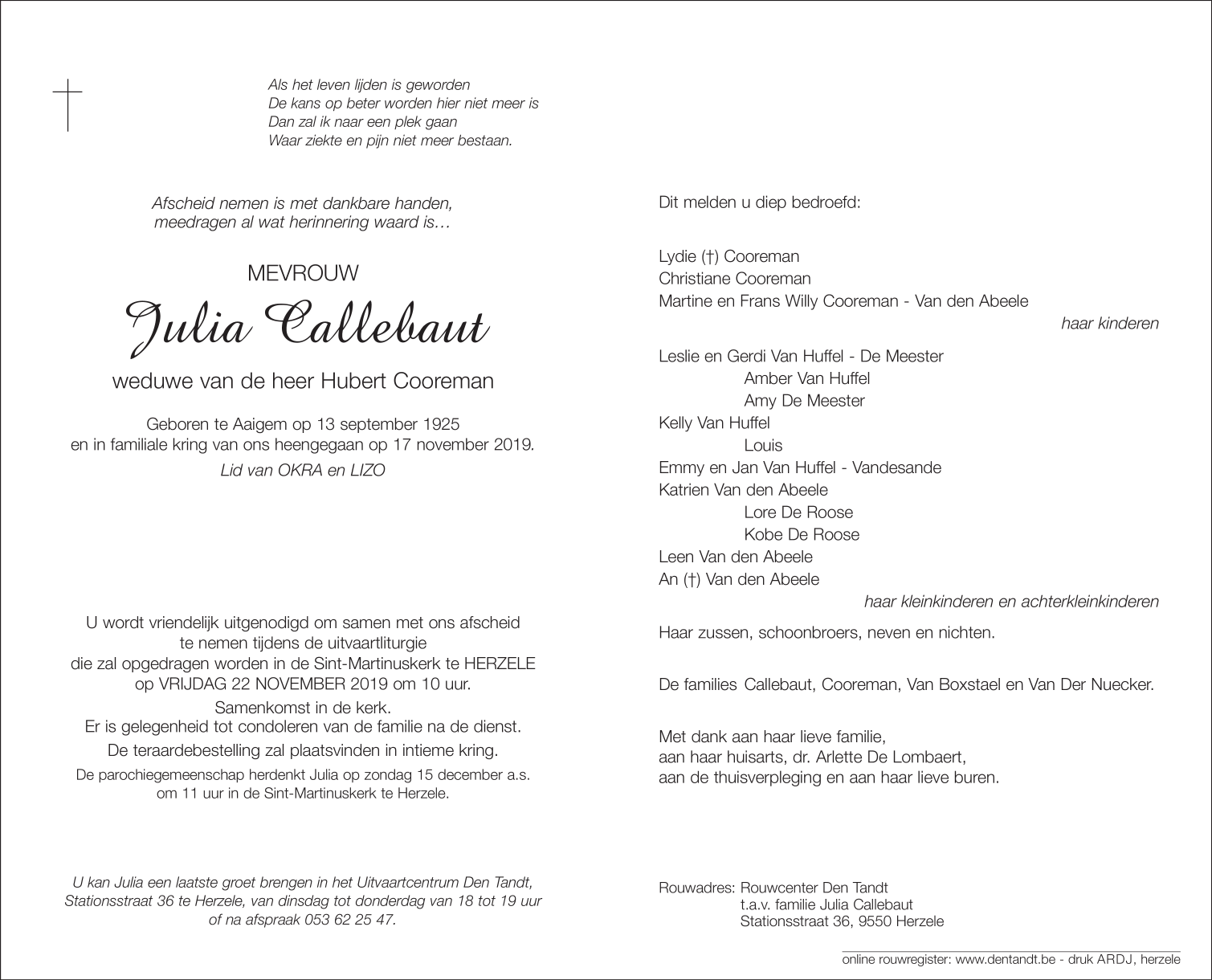 Overleden te Herzele (9550) op zondag 17 november 2019 op 94-jarige leeftijd