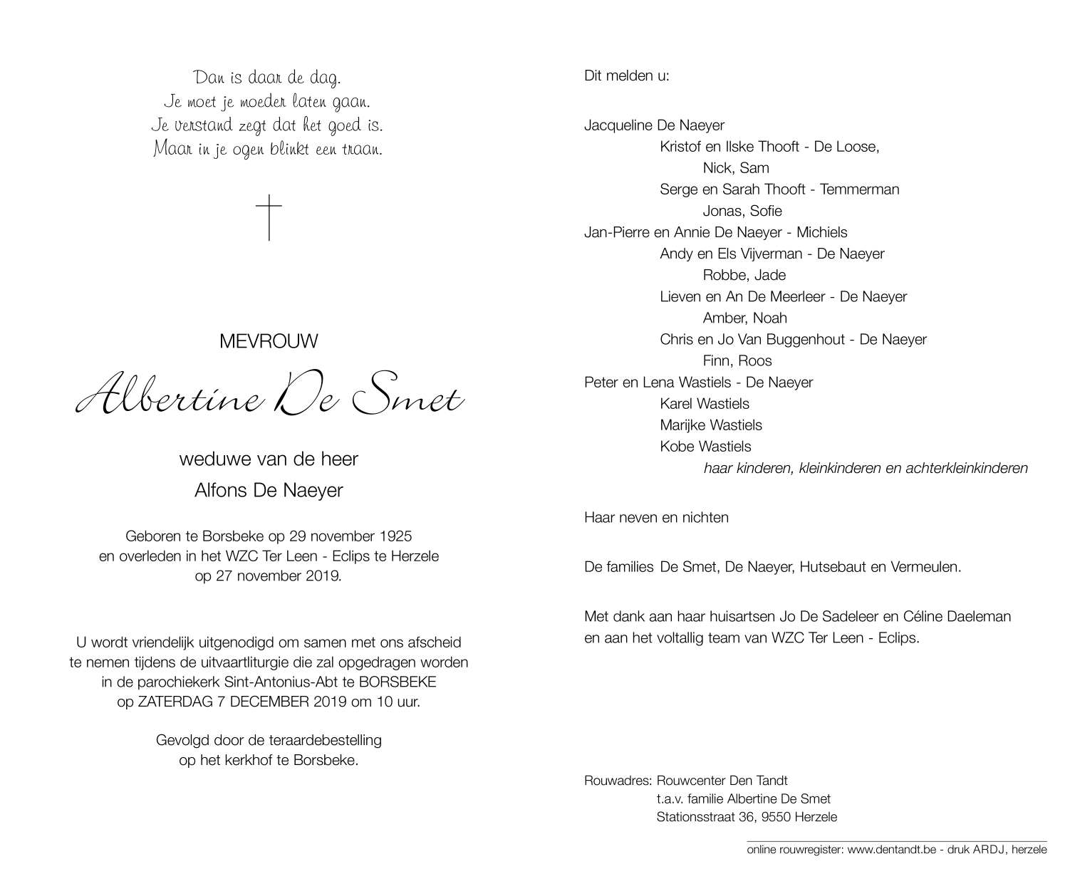 Overleden te Herzele (9550) op woensdag 27 november 2019 op 93-jarige leeftijd