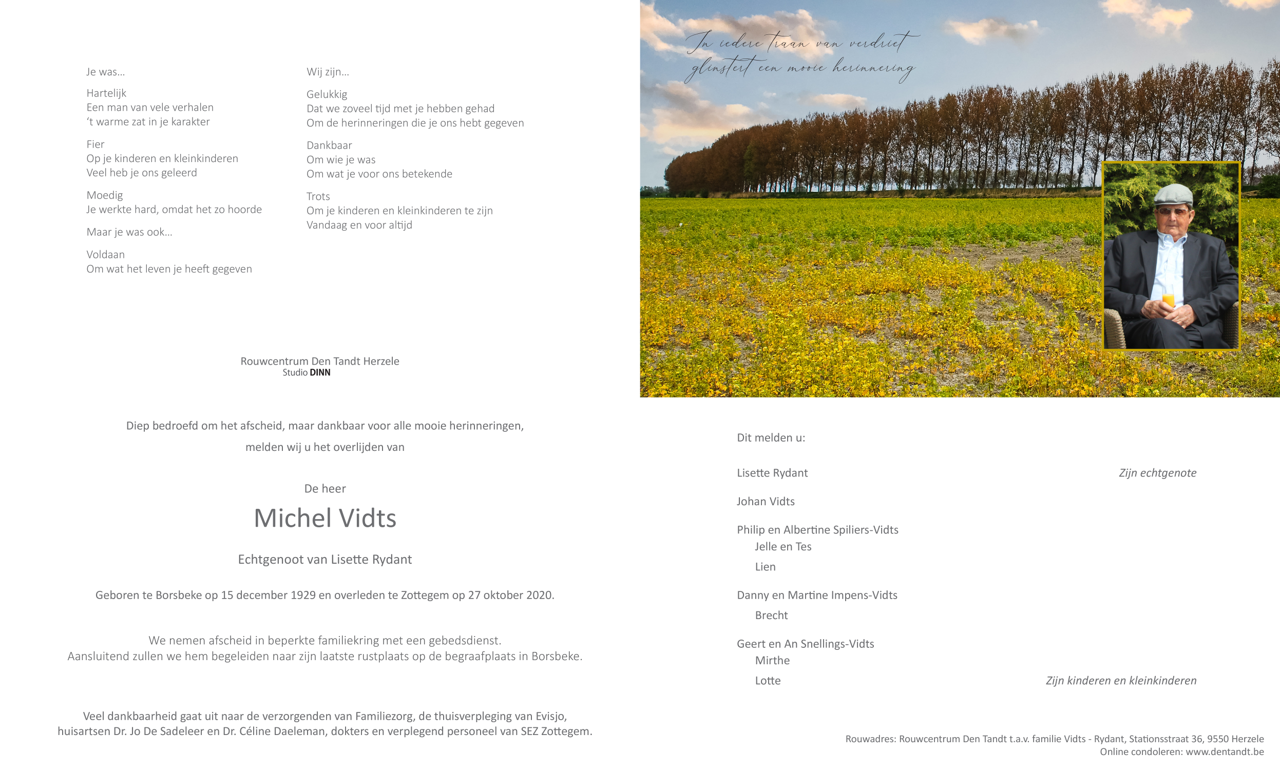 Overleden te Zottegem (9620) op dinsdag 27 oktober 2020 op 90-jarige leeftijd