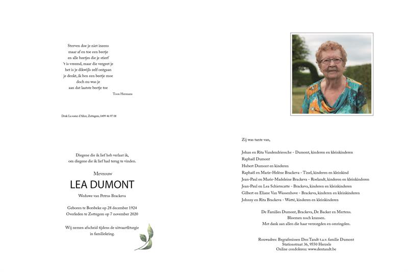Overleden te Zottegem (9620) op zaterdag 7 november 2020 op 95-jarige leeftijd