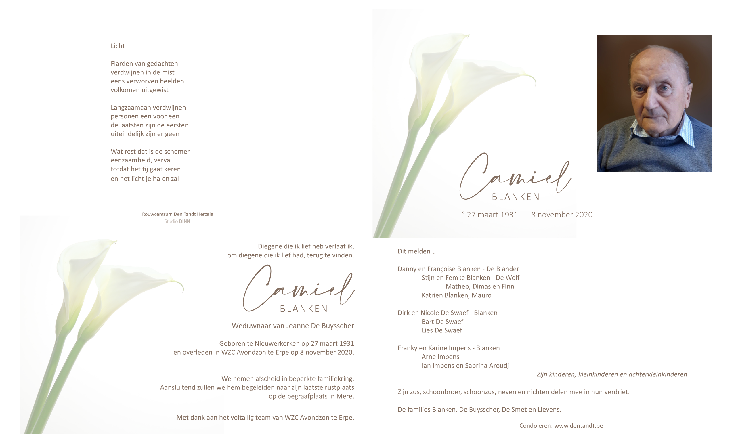 Overleden te Erpe-Mere (9420) op zondag 8 november 2020 op 89-jarige leeftijd