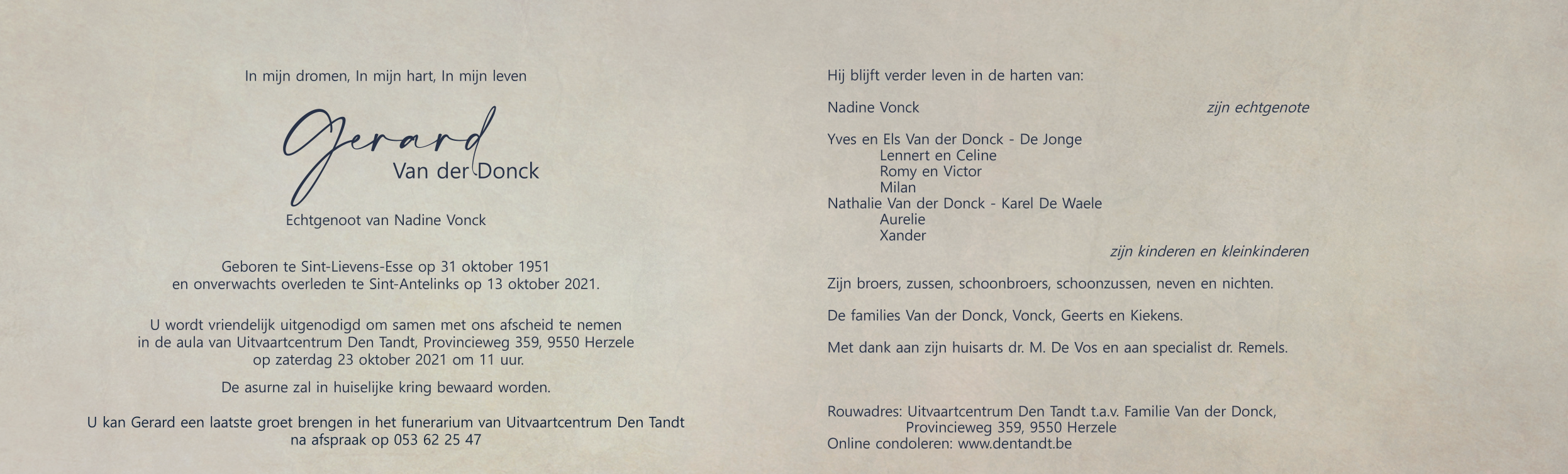 Overleden te Sint-Antelinks (9550) op woensdag 13 oktober 2021 op 69-jarige leeftijd
