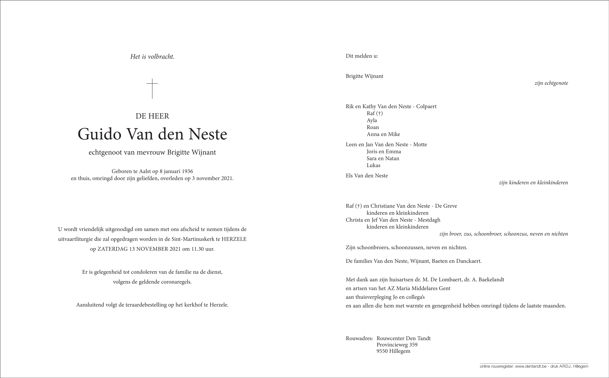 Overleden te Ressegem (9551) op woensdag 3 november 2021 op 85-jarige leeftijd
