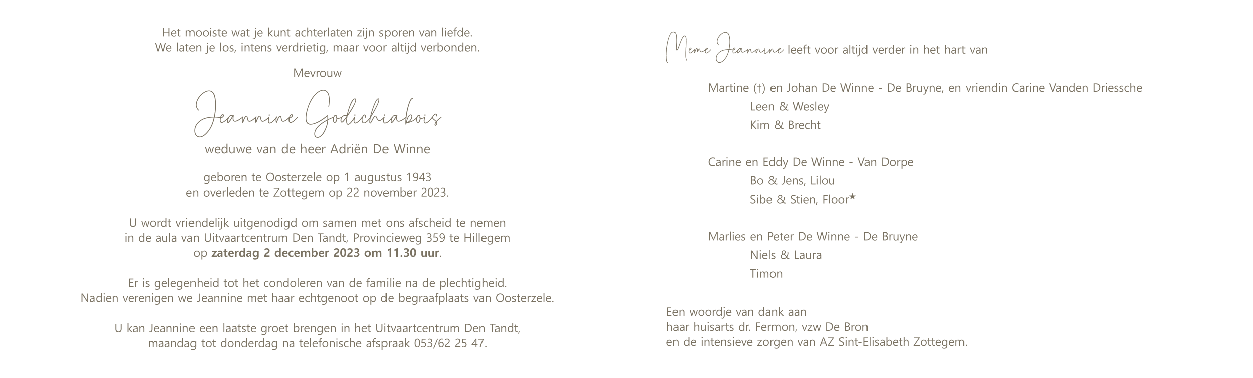 Overleden te Zottegem (9620) op woensdag 22 november 2023 op 80-jarige leeftijd