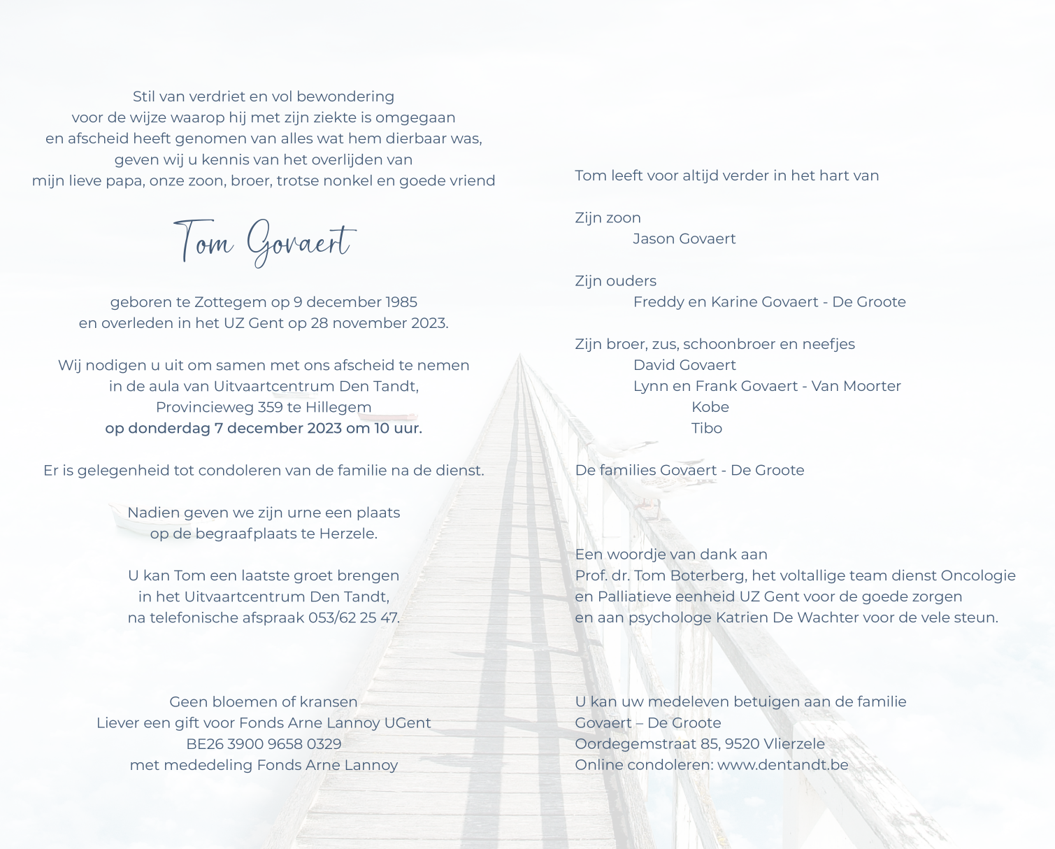 Overleden te Gent (9000) op dinsdag 28 november 2023 op 37-jarige leeftijd