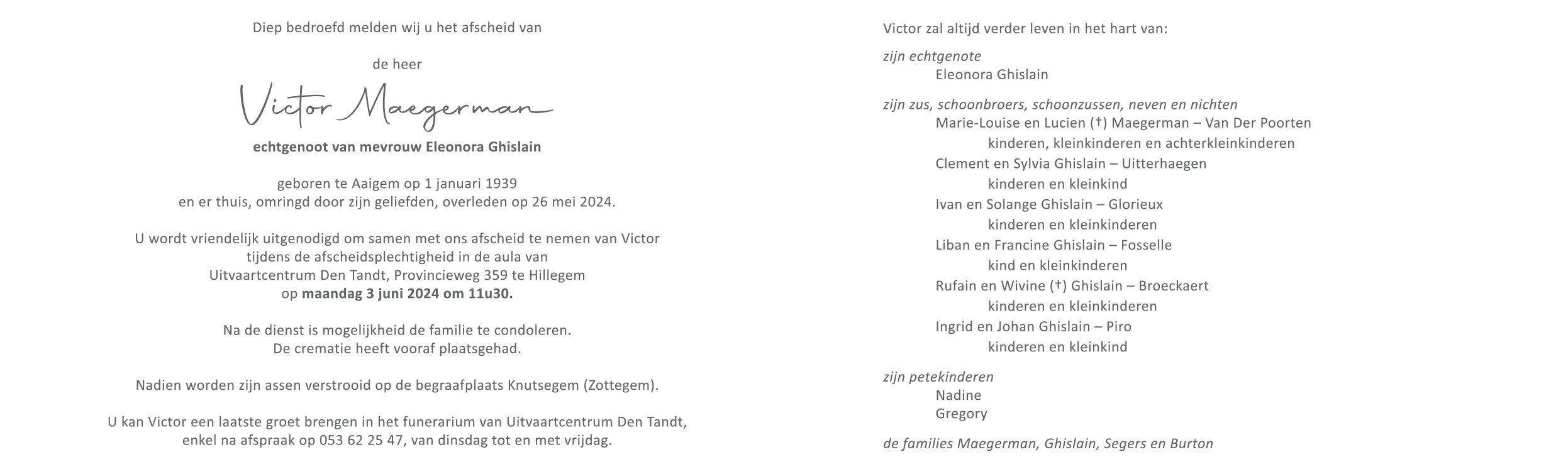 Overleden te Aaigem (9420) op zondag 26 mei 2024 op 85-jarige leeftijd