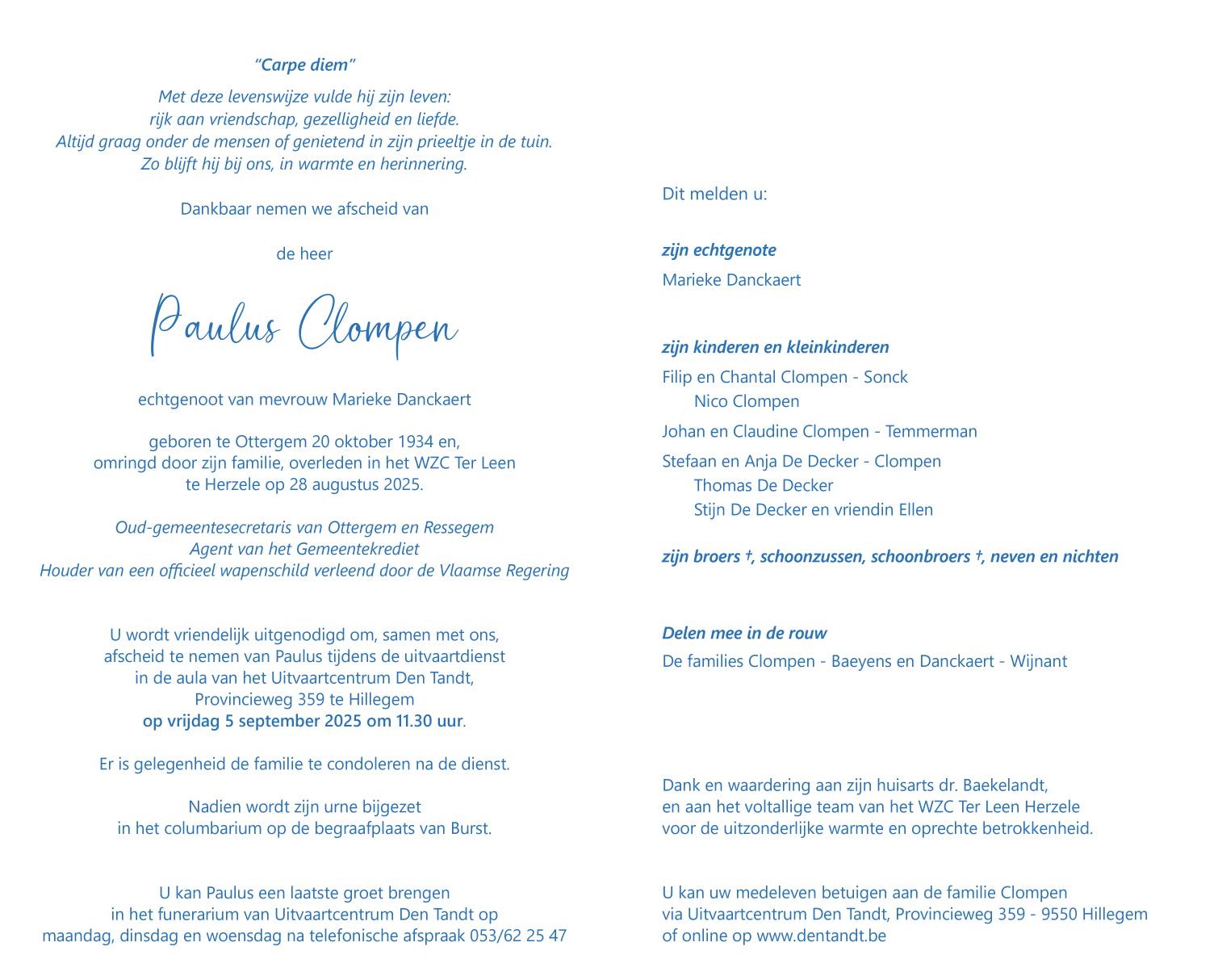 Overleden te Herzele (9550) op donderdag 28 augustus 2025 op 90-jarige leeftijd