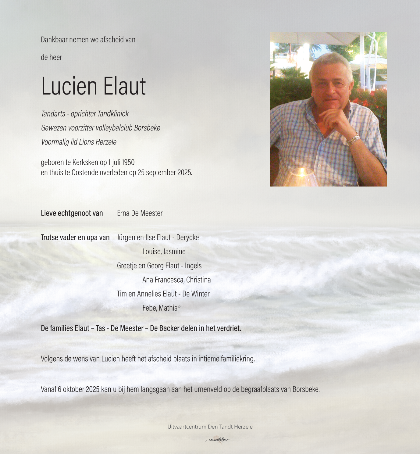 Overleden te Oostende (8400) op donderdag 25 september 2025 op 75-jarige leeftijd