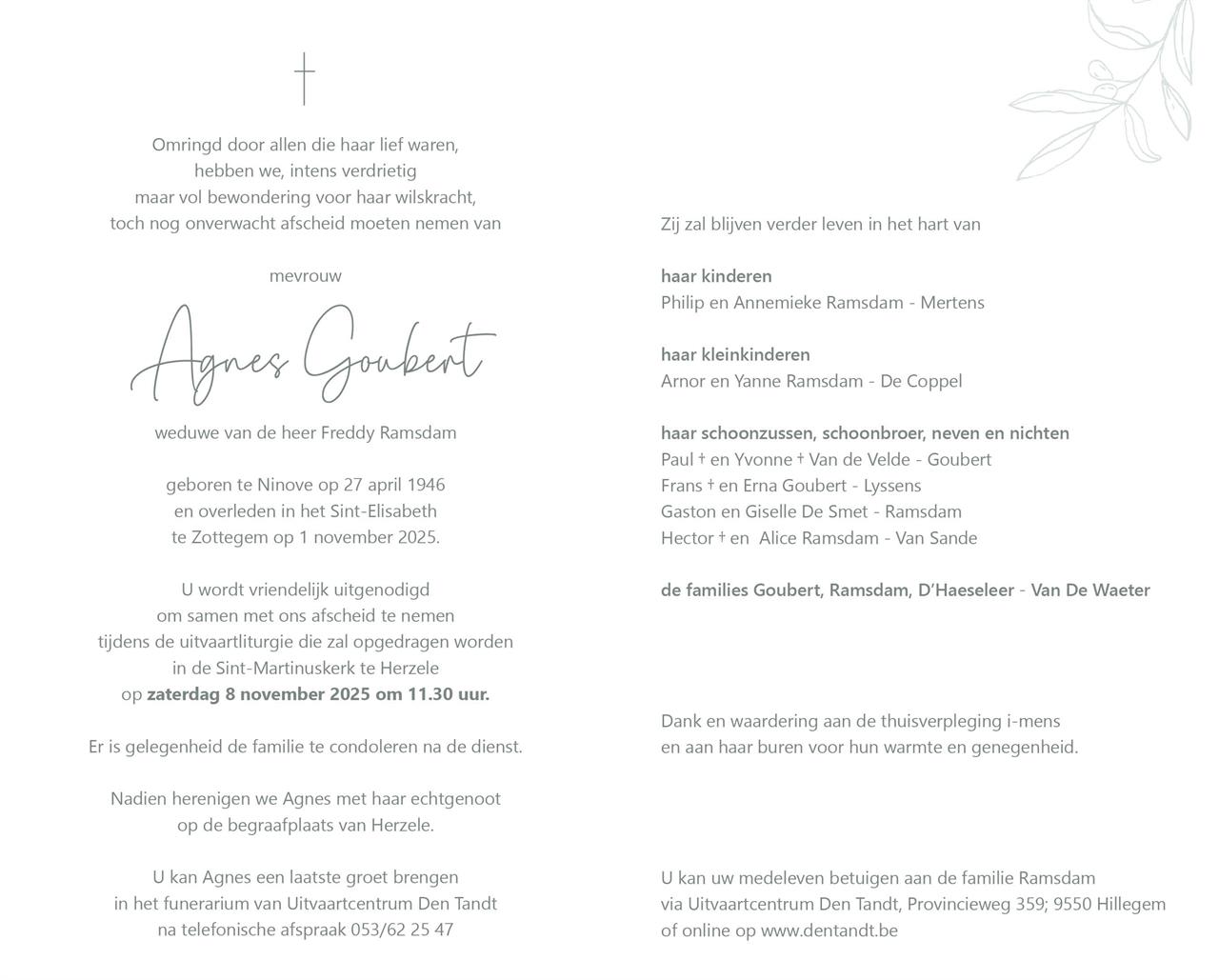 Overleden te Zottegem (9620) op zaterdag 1 november 2025 op 79-jarige leeftijd