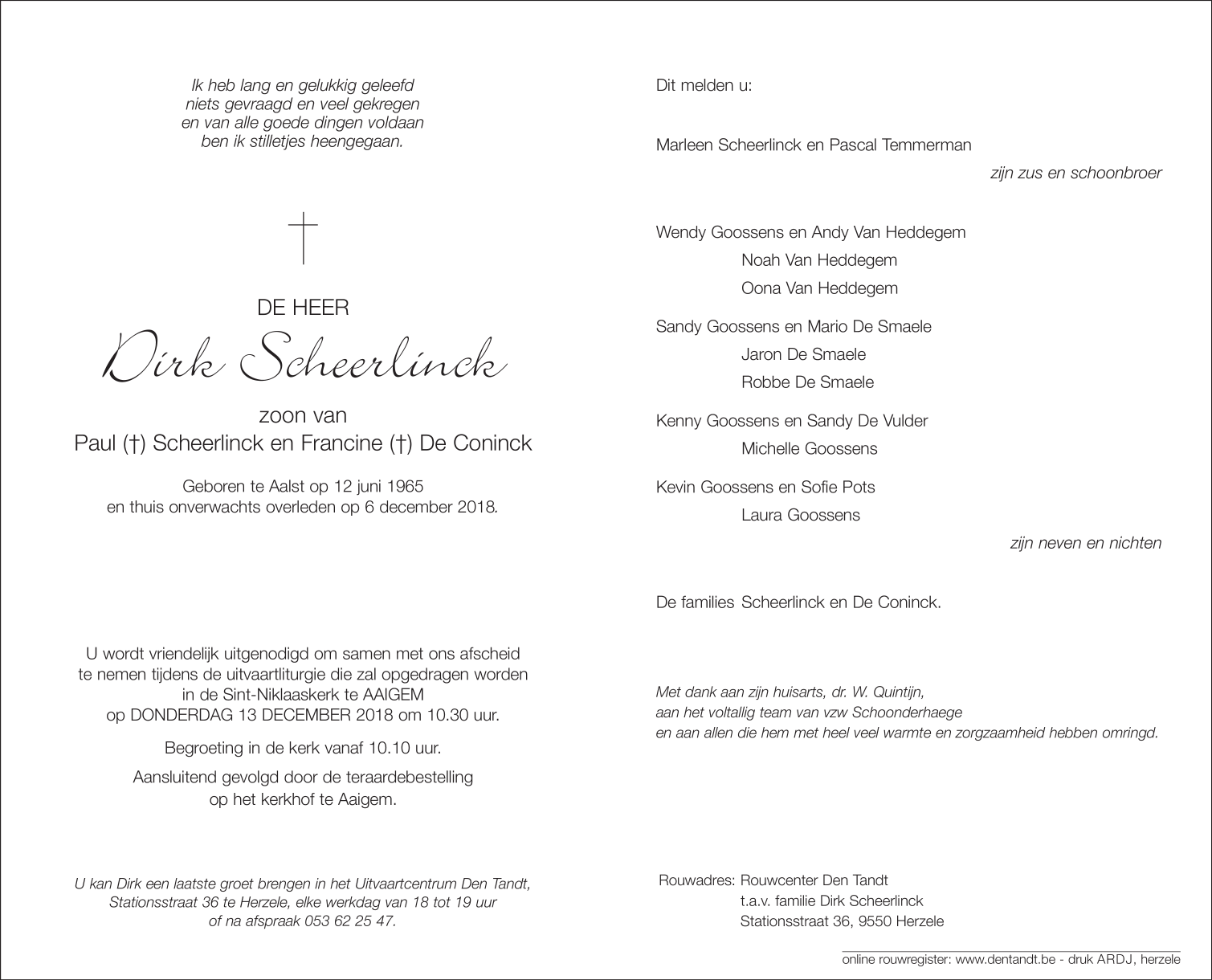 Overleden te Bambrugge (9420) op donderdag 6 december 2018 op 53-jarige leeftijd