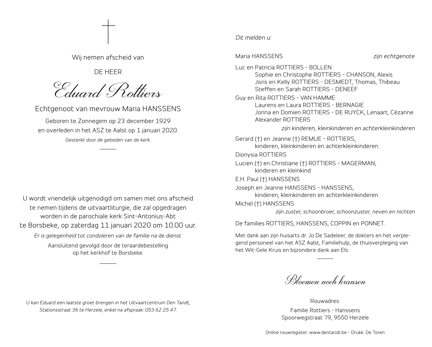 Overleden te Aalst (9300) op woensdag 1 januari 2020 op 90-jarige leeftijd