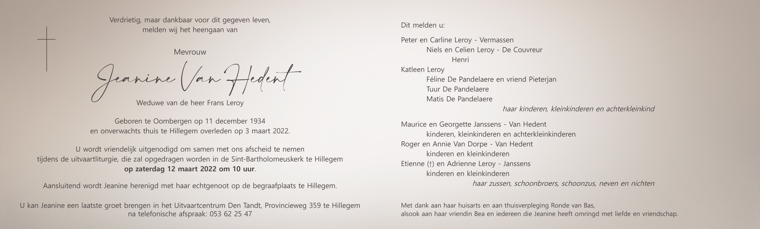 Overleden te Hillegem (9550) op donderdag 3 maart 2022 op 87-jarige leeftijd