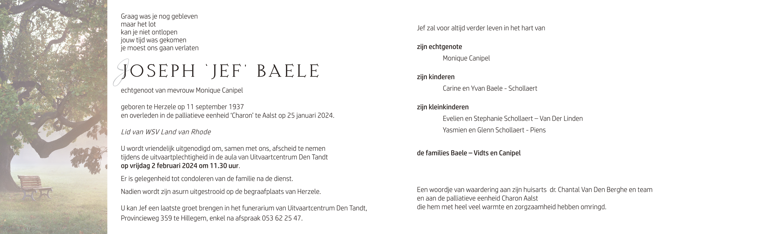 Overleden te Aalst (9300) op donderdag 25 januari 2024 op 86-jarige leeftijd