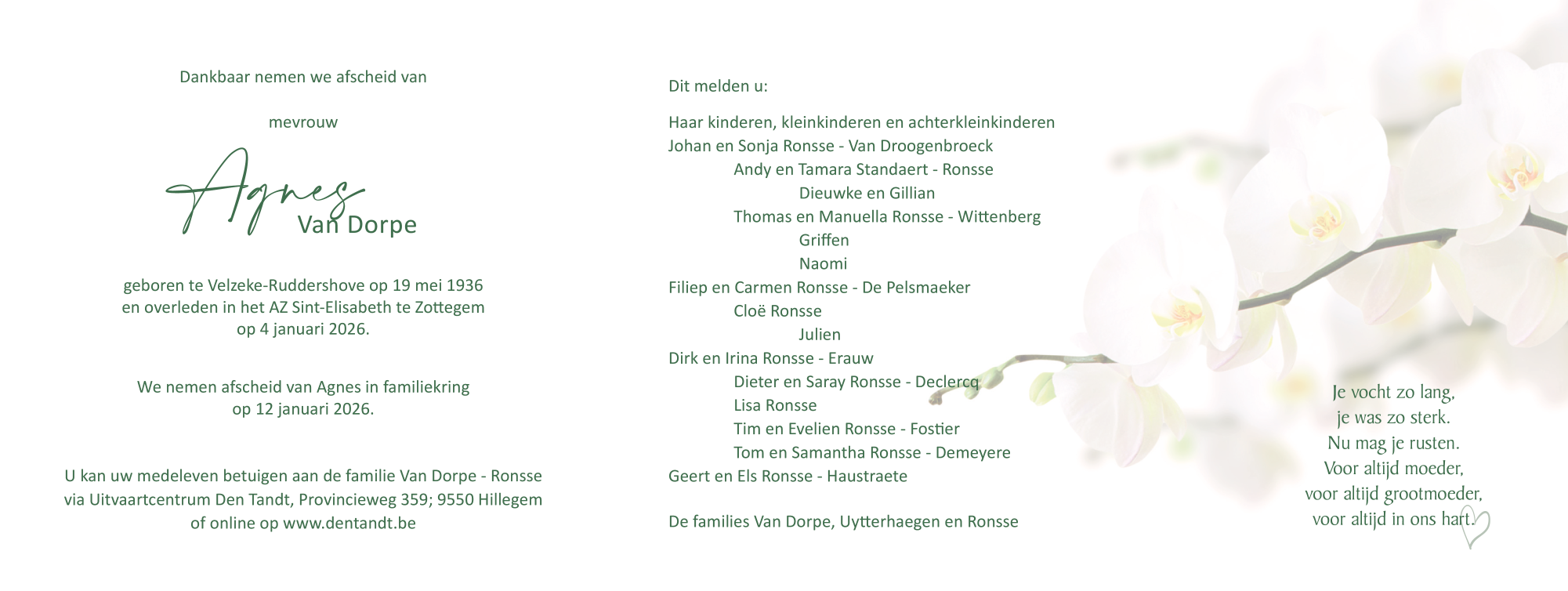 Overleden te Zottegem (9620) op zondag 4 januari 2026 op 89-jarige leeftijd