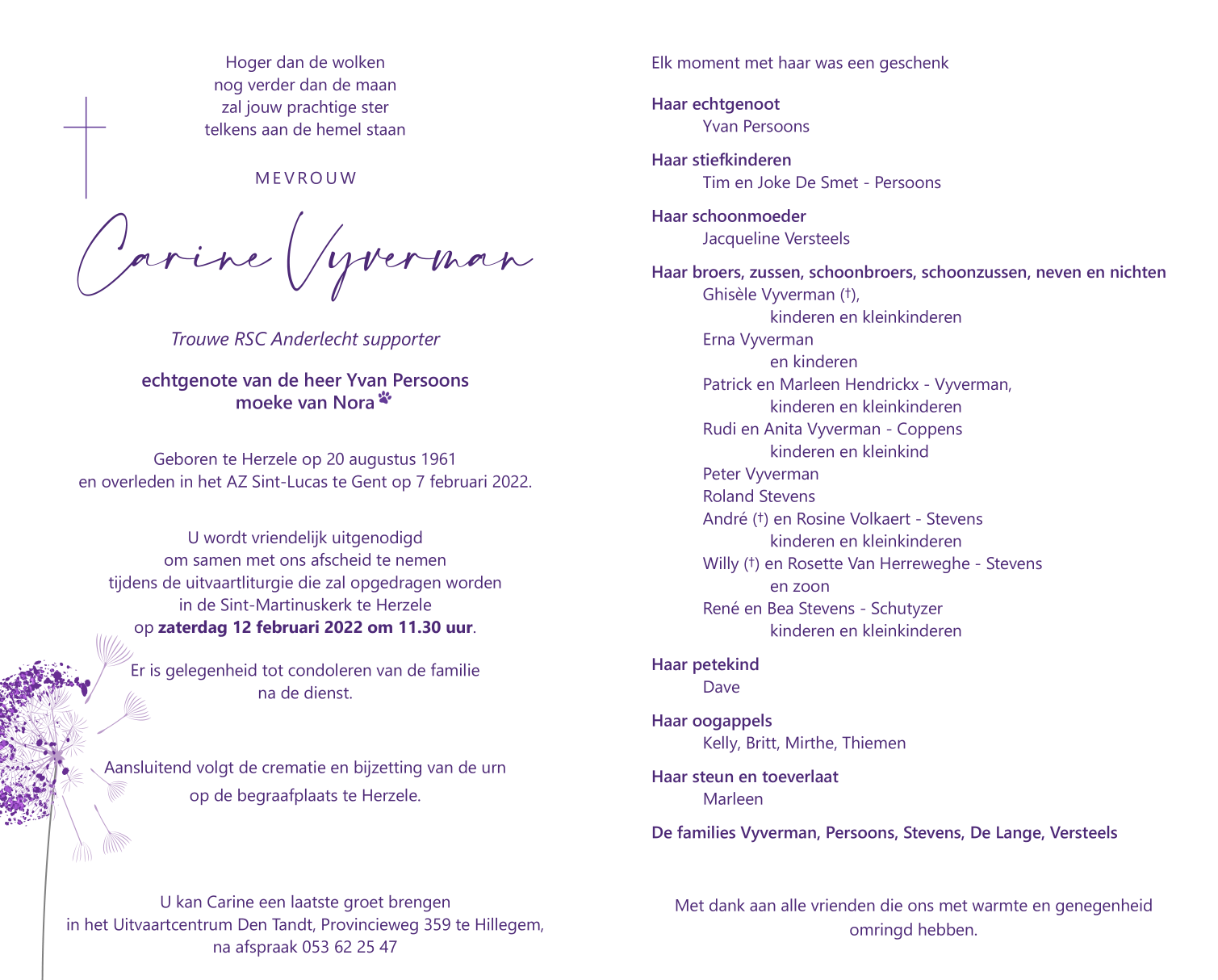 Overleden te Gent (9000) op maandag 7 februari 2022 op 60-jarige leeftijd