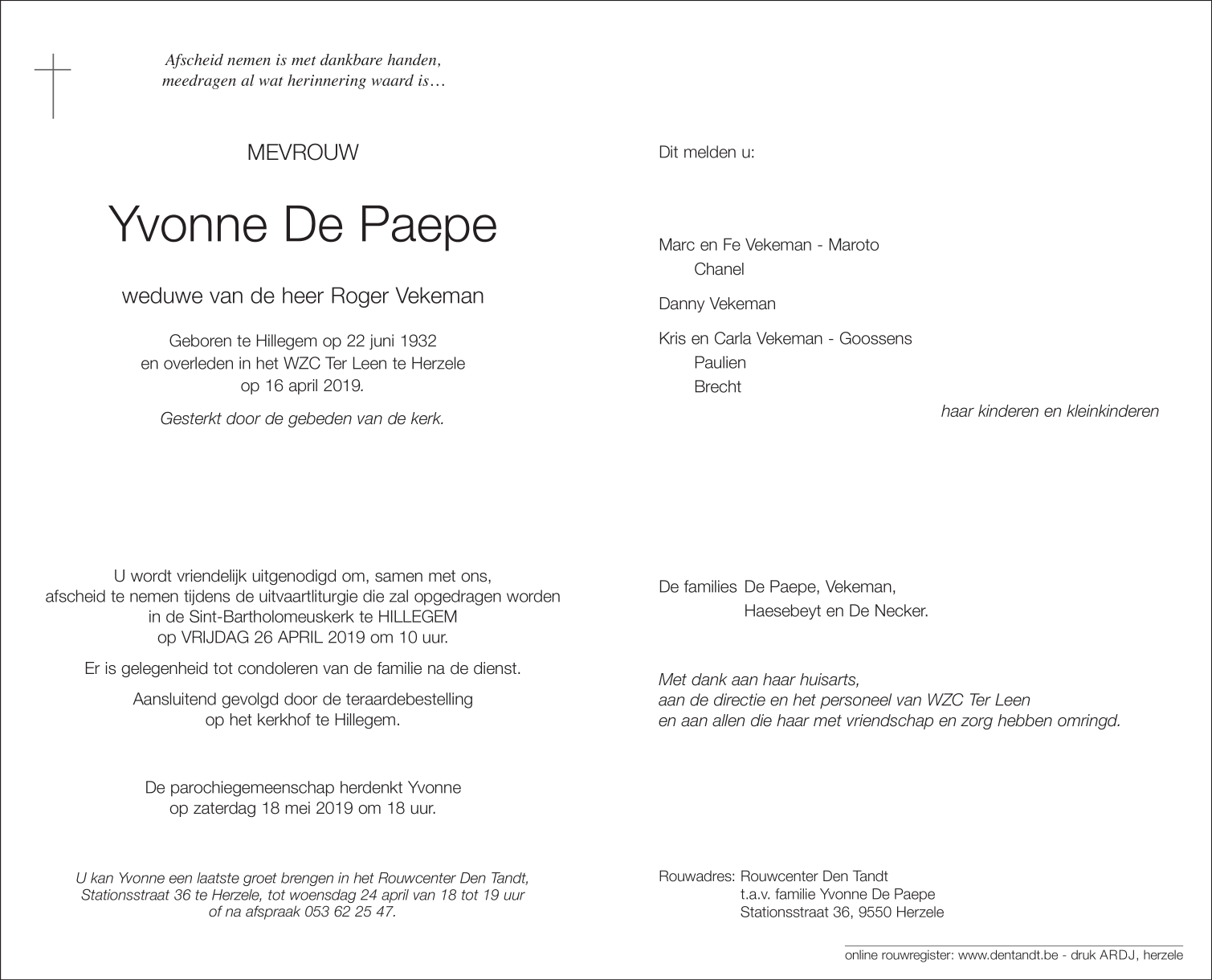 Overleden te Herzele (9550) op dinsdag 16 april 2019 op 86-jarige leeftijd