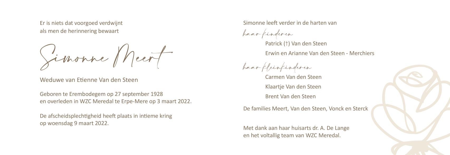 Overleden te Mere (9420) op donderdag 3 maart 2022 op 93-jarige leeftijd