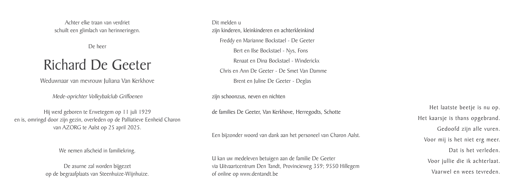 Overleden te Aalst (9300) op vrijdag 25 april 2025 op 95-jarige leeftijd