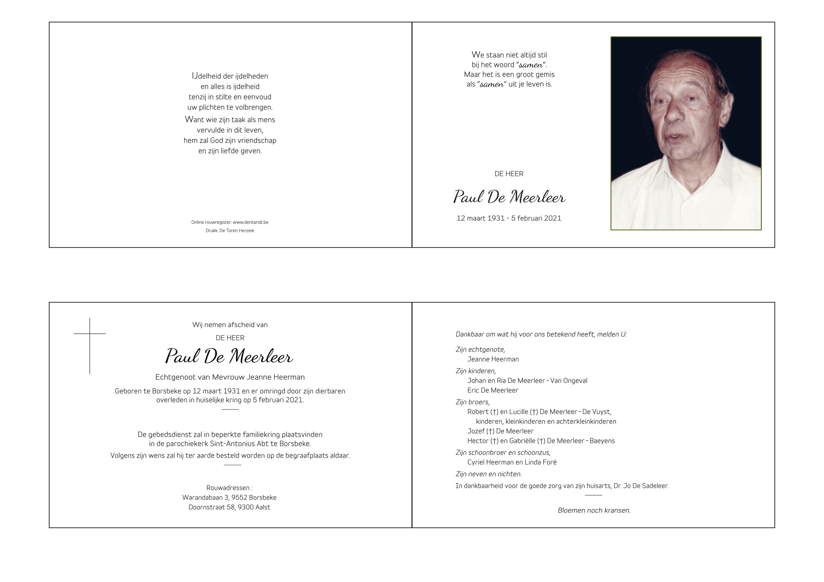 Overleden te Borsbeke (9552) op vrijdag 5 februari 2021 op 89-jarige leeftijd