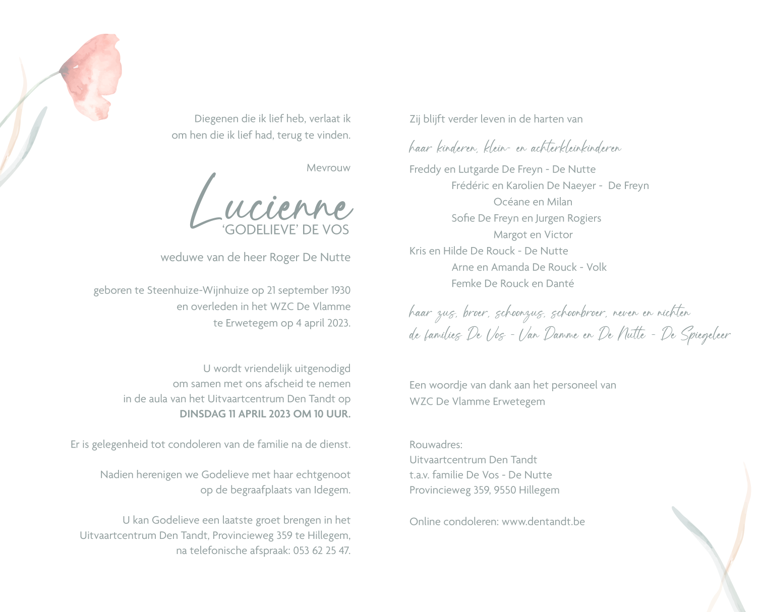 Overleden te Erwetegem (9620) op dinsdag 4 april 2023 op 92-jarige leeftijd