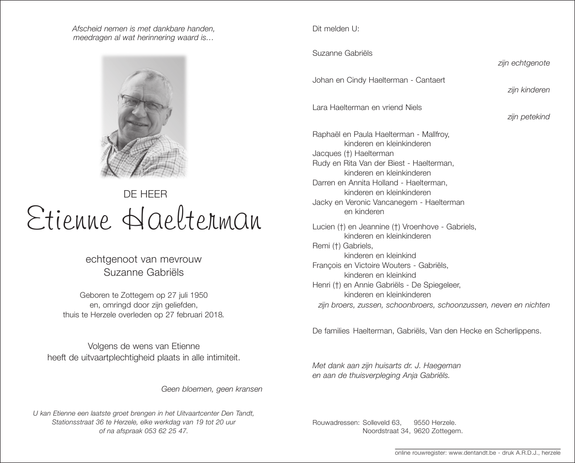 Overleden te Herzele (9550) op dinsdag 27 februari 2018 op 67-jarige leeftijd
