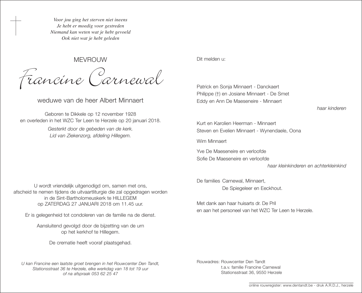 Overleden te Herzele (9550) op zaterdag 20 januari 2018 op 89-jarige leeftijd