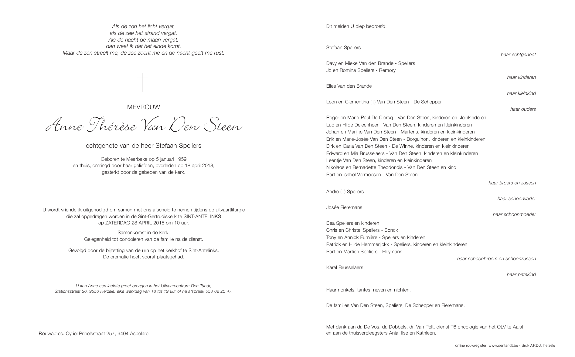 Overleden te Aspelare (9404) op woensdag 18 april 2018 op 59-jarige leeftijd