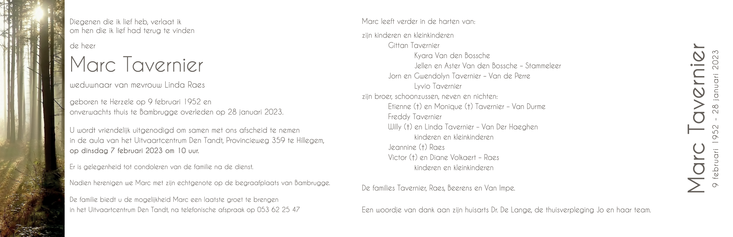 Overleden te Bambrugge (9420) op zaterdag 28 januari 2023 op 70-jarige leeftijd