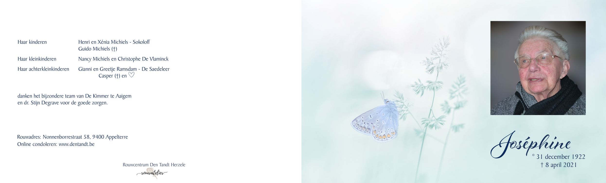 Overleden te Aaigem (9420) op donderdag 8 april 2021 op 98-jarige leeftijd