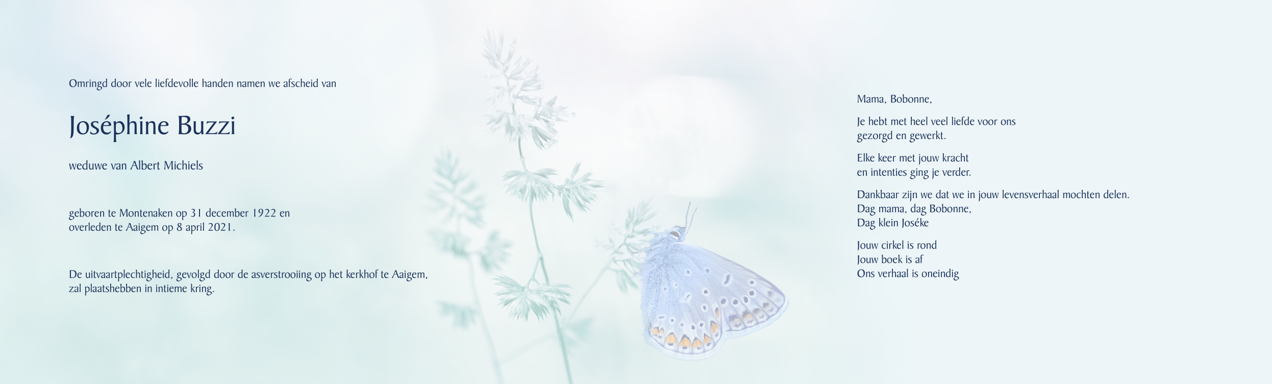 Overlijdensbericht binnenkant