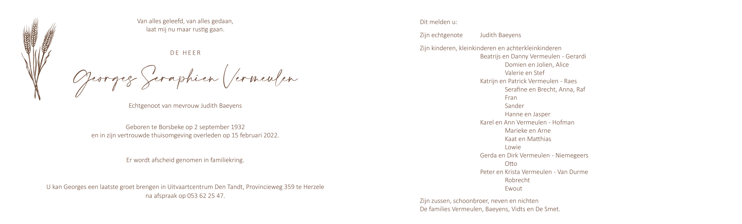 Overleden te Borsbeke (9552) op dinsdag 15 februari 2022 op 89-jarige leeftijd