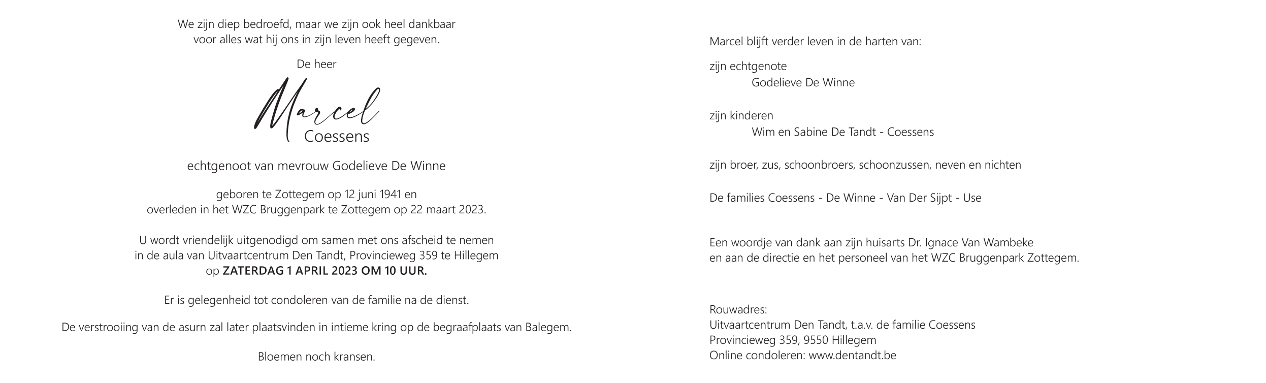 Overleden te Zottegem (9620) op woensdag 22 maart 2023 op 81-jarige leeftijd