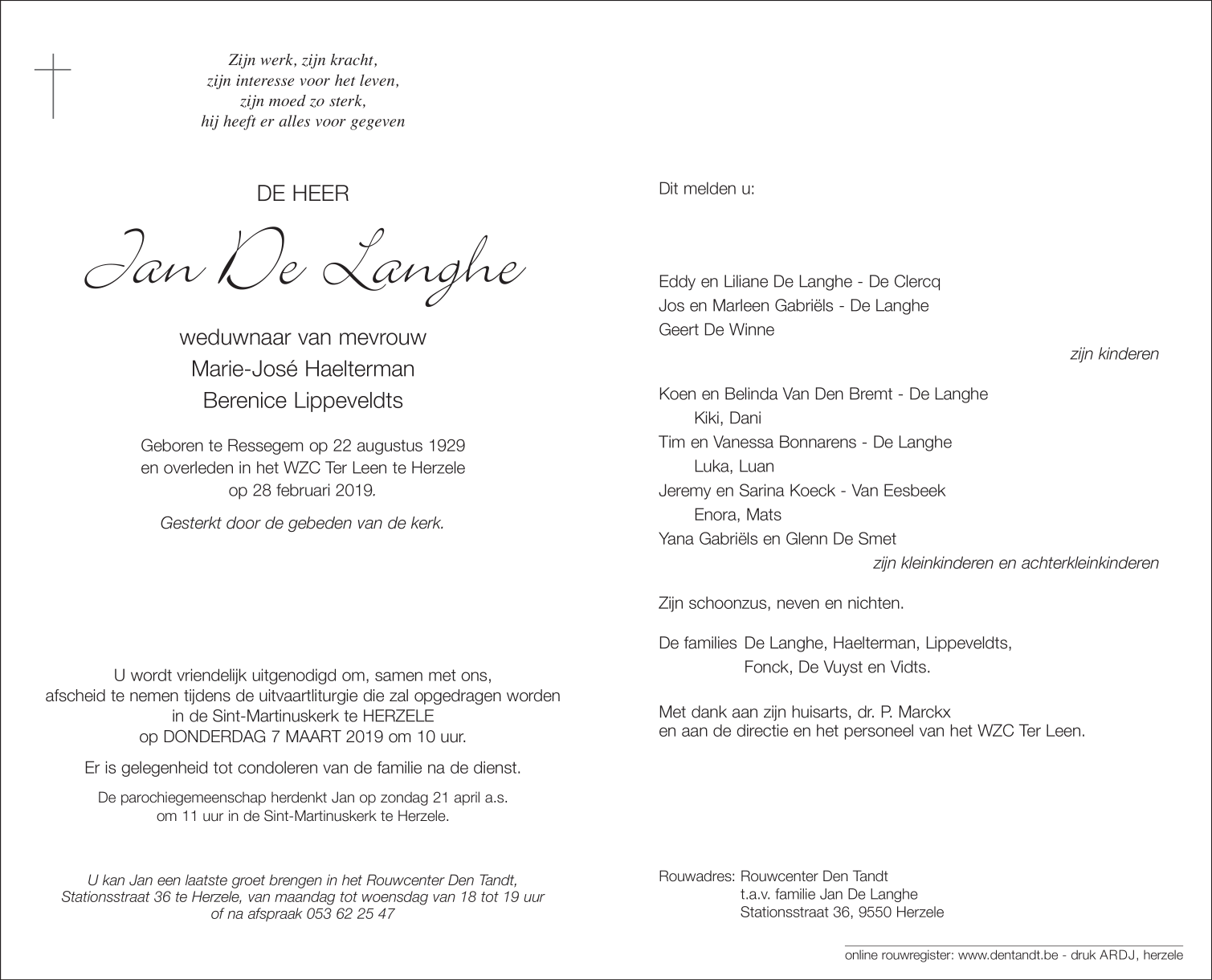 Overleden te Herzele (9550) op donderdag 28 februari 2019 op 89-jarige leeftijd