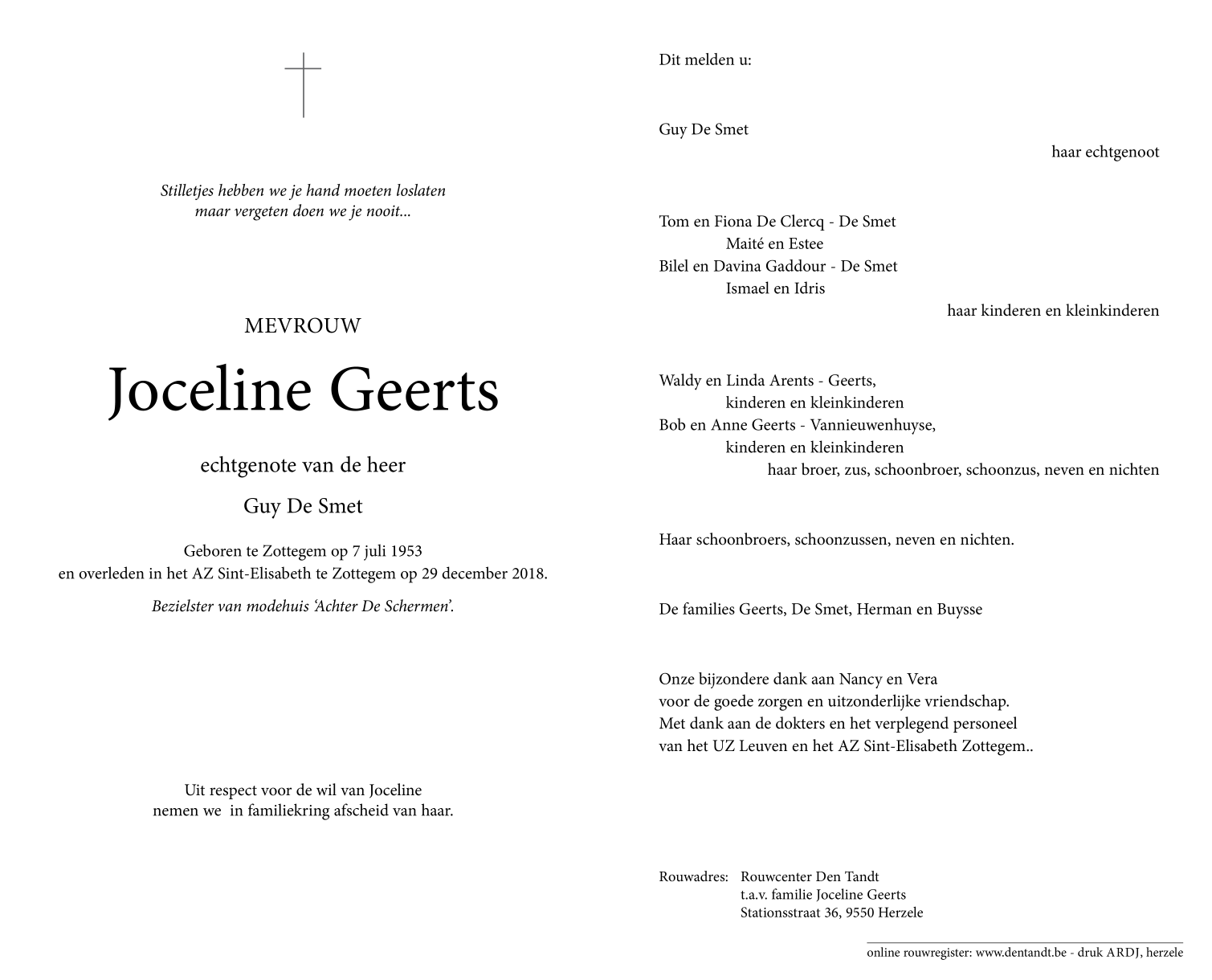 Overleden te Zottegem (9620) op zaterdag 29 december 2018 op 65-jarige leeftijd