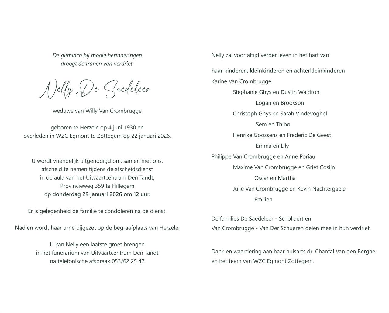 Overleden te Zottegem (9620) op donderdag 22 januari 2026 op 95-jarige leeftijd