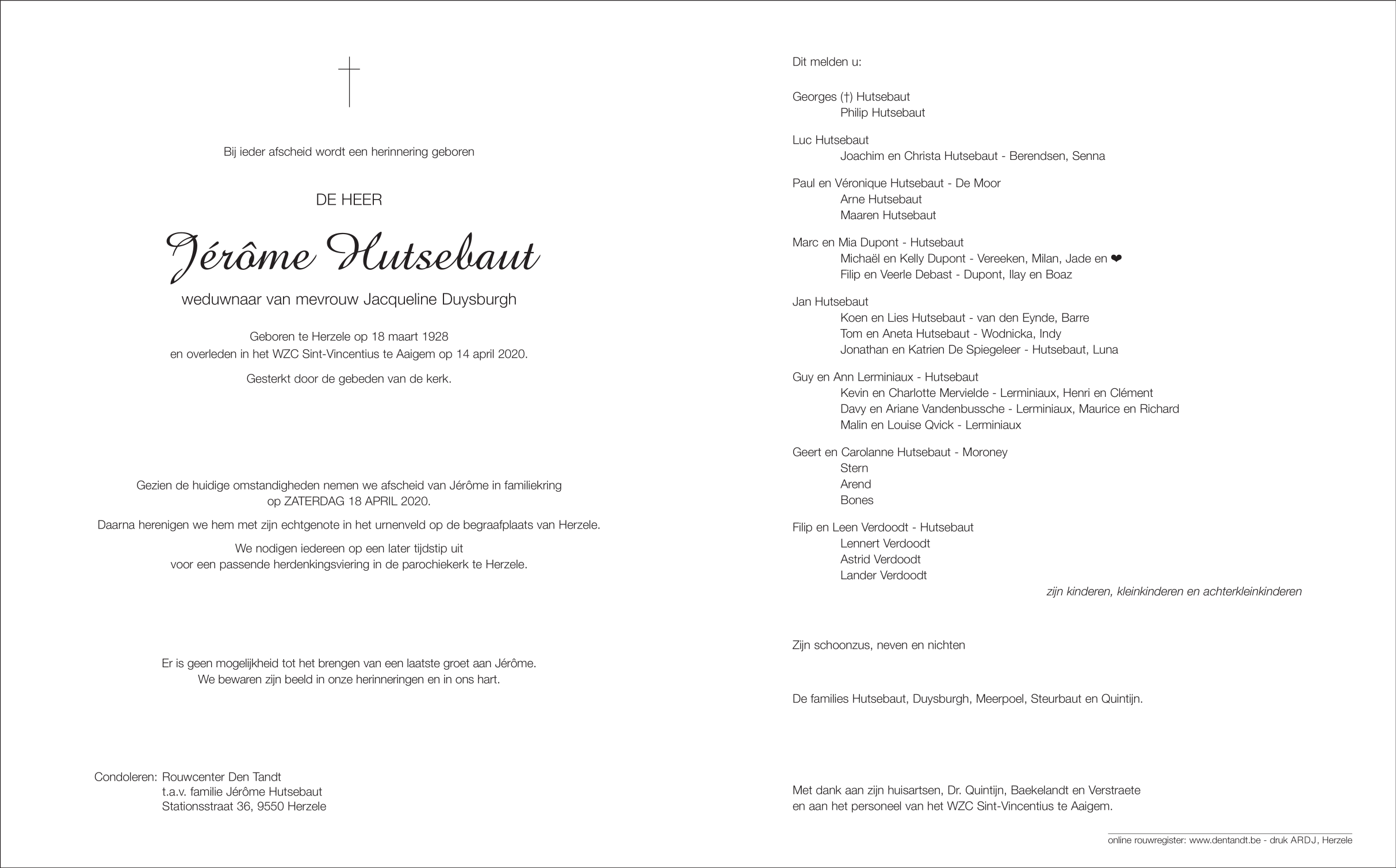 Overleden te Aaigem (9420) op dinsdag 14 april 2020 op 92-jarige leeftijd