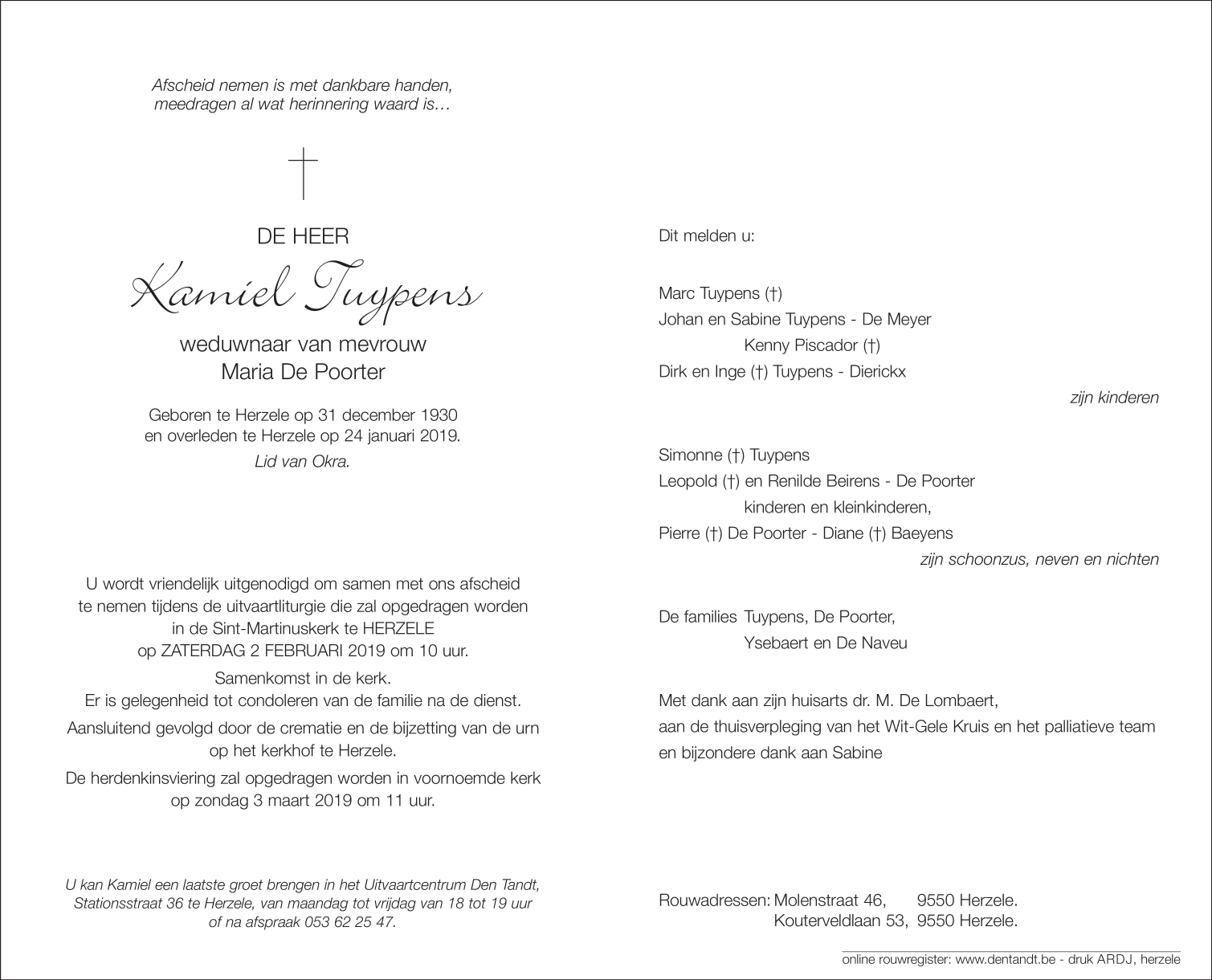 Overleden te Herzele (9550) op donderdag 24 januari 2019 op 88-jarige leeftijd