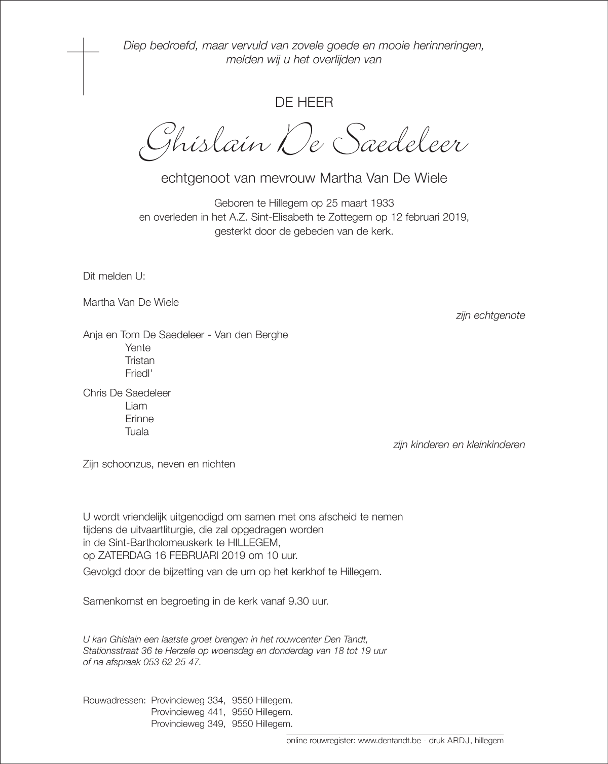 De Heer Ghislain De Saedeleer