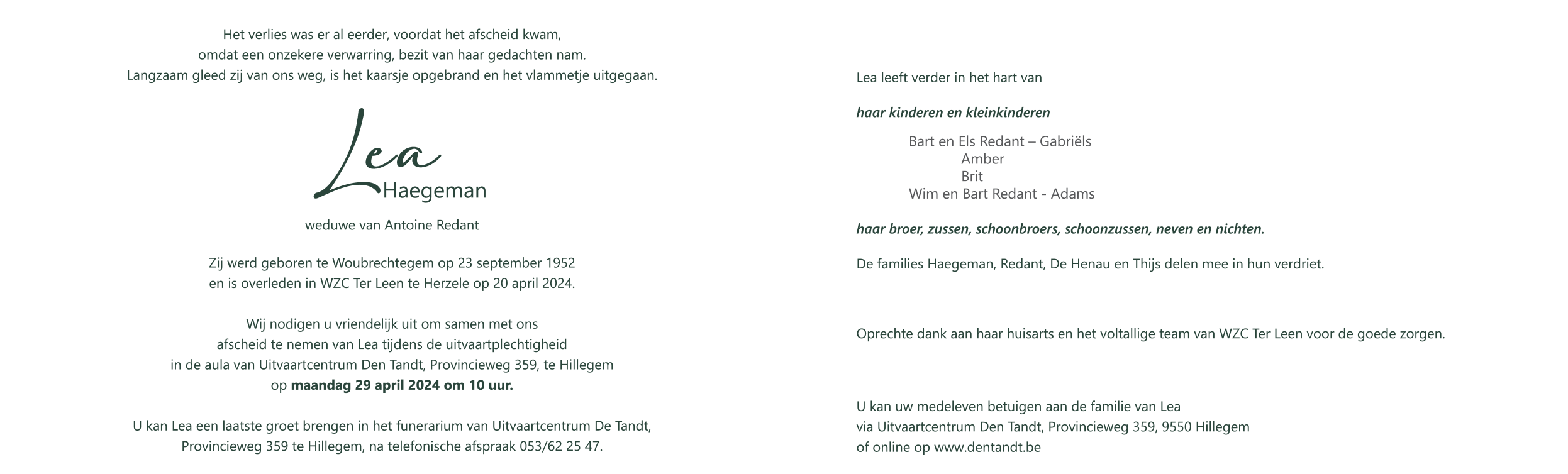 mevrouw Lea Haegeman