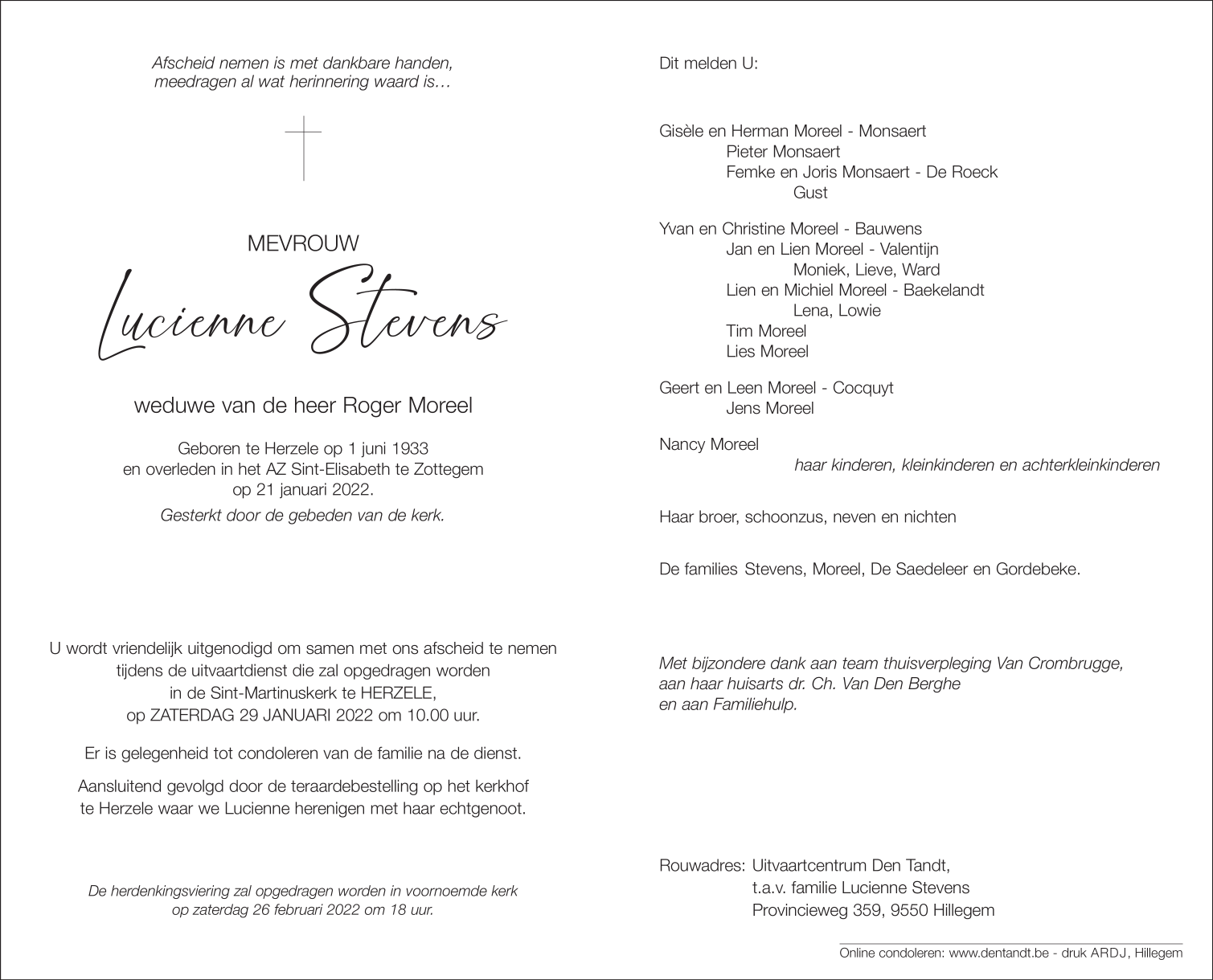 Overleden te Zottegem (9620) op vrijdag 21 januari 2022 op 88-jarige leeftijd