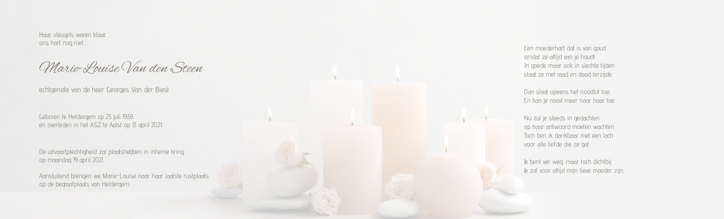 Overleden te Aalst (9300) op dinsdag 13 april 2021 op 82-jarige leeftijd