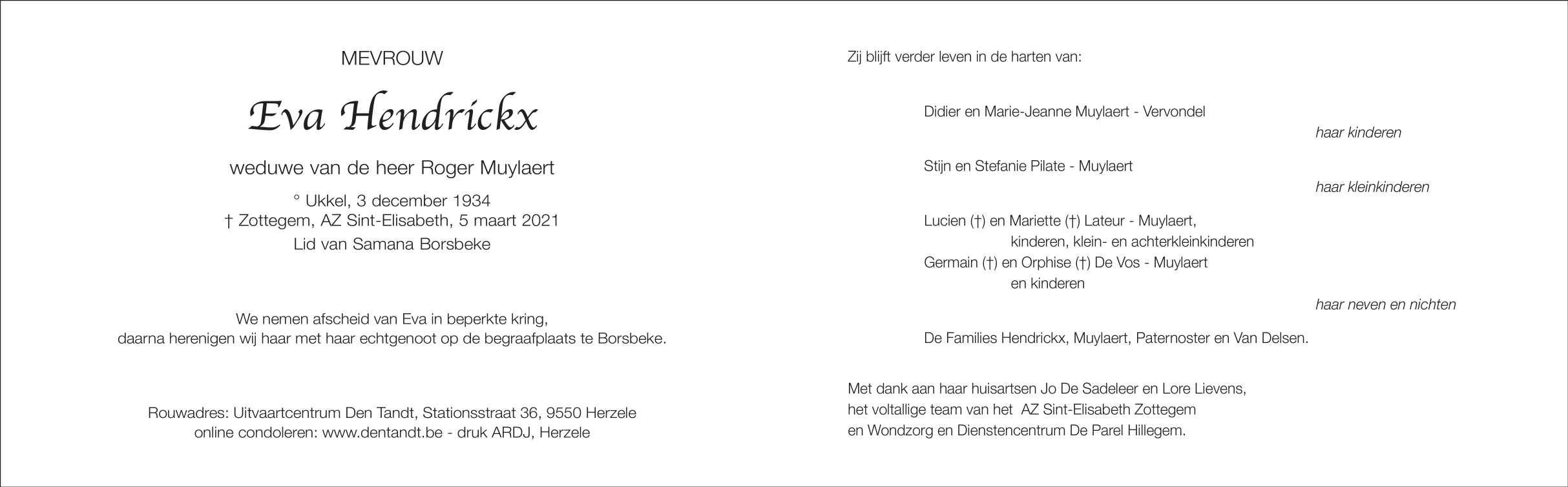 Mevrouw Eva Hendrickx