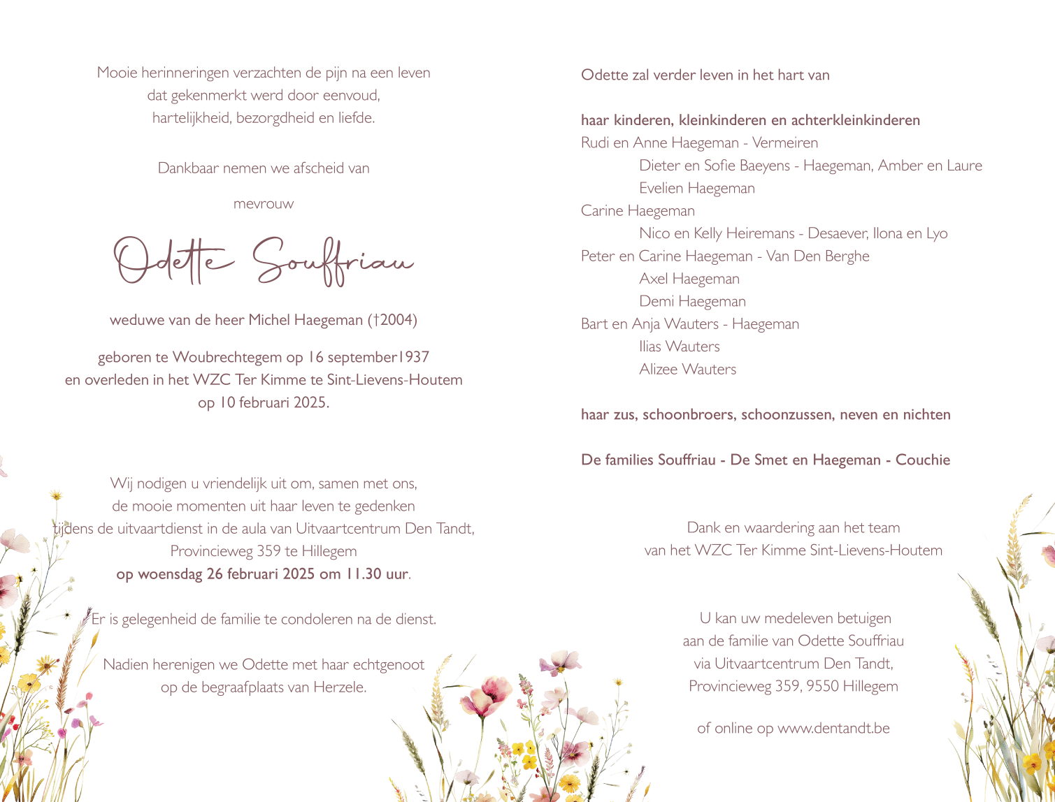 Overleden te Sint-Lievens-Houtem (9520) op maandag 10 februari 2025 op 87-jarige leeftijd