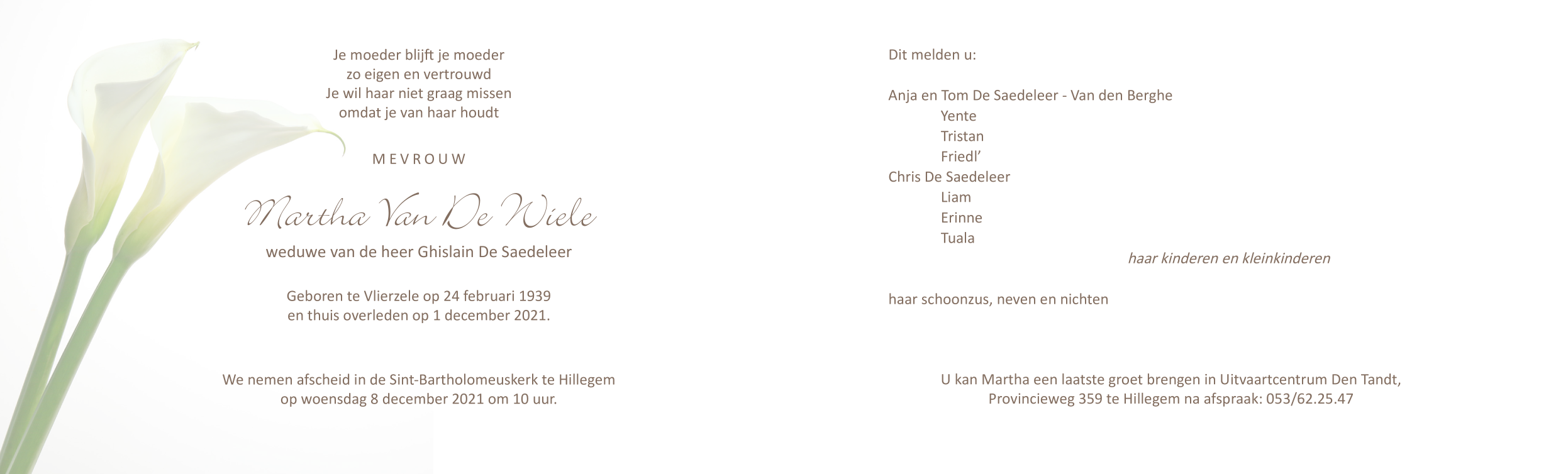 Overleden te Hillegem (9550) op woensdag 1 december 2021 op 82-jarige leeftijd
