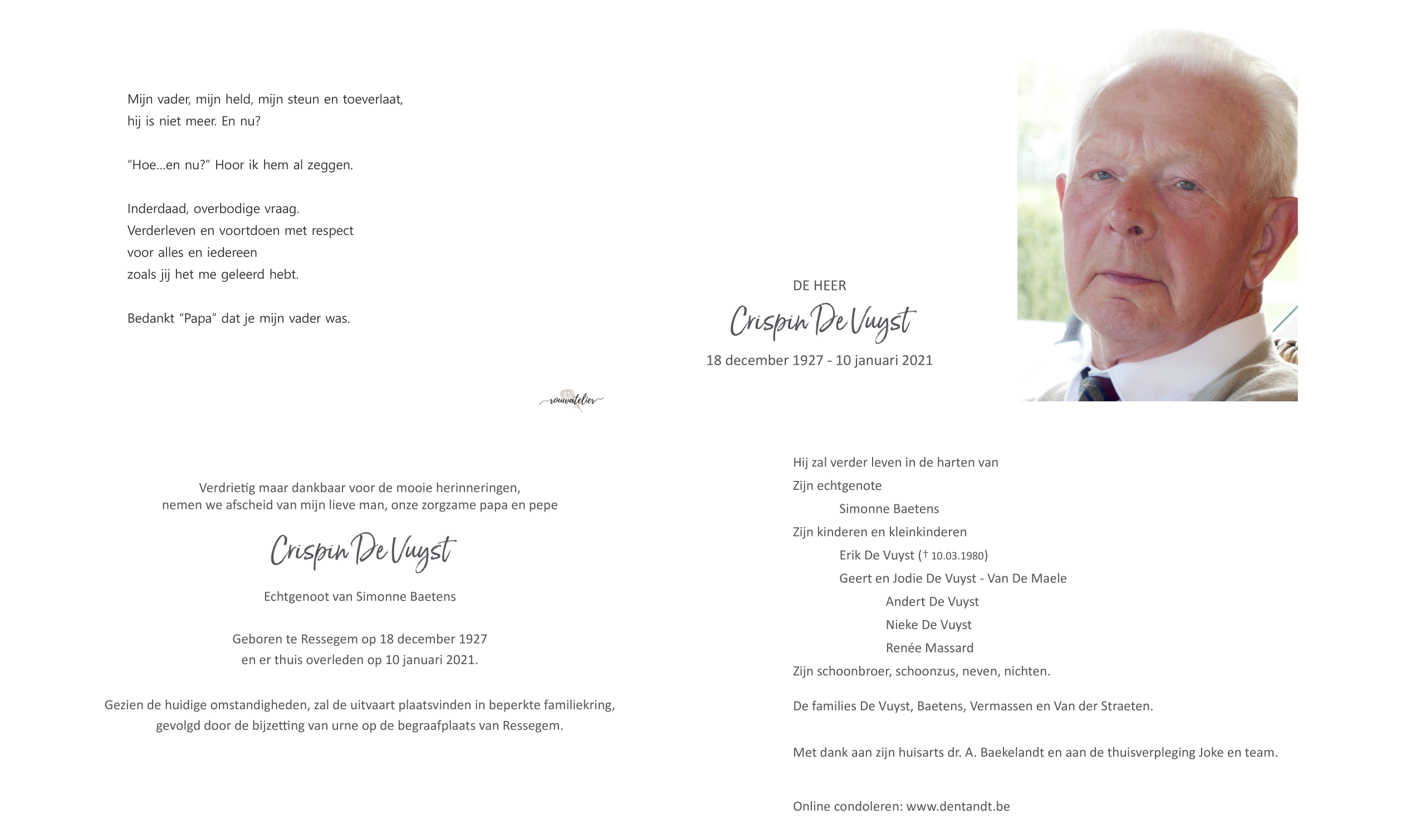 Overleden te Ressegem (9551) op zondag 10 januari 2021 op 93-jarige leeftijd