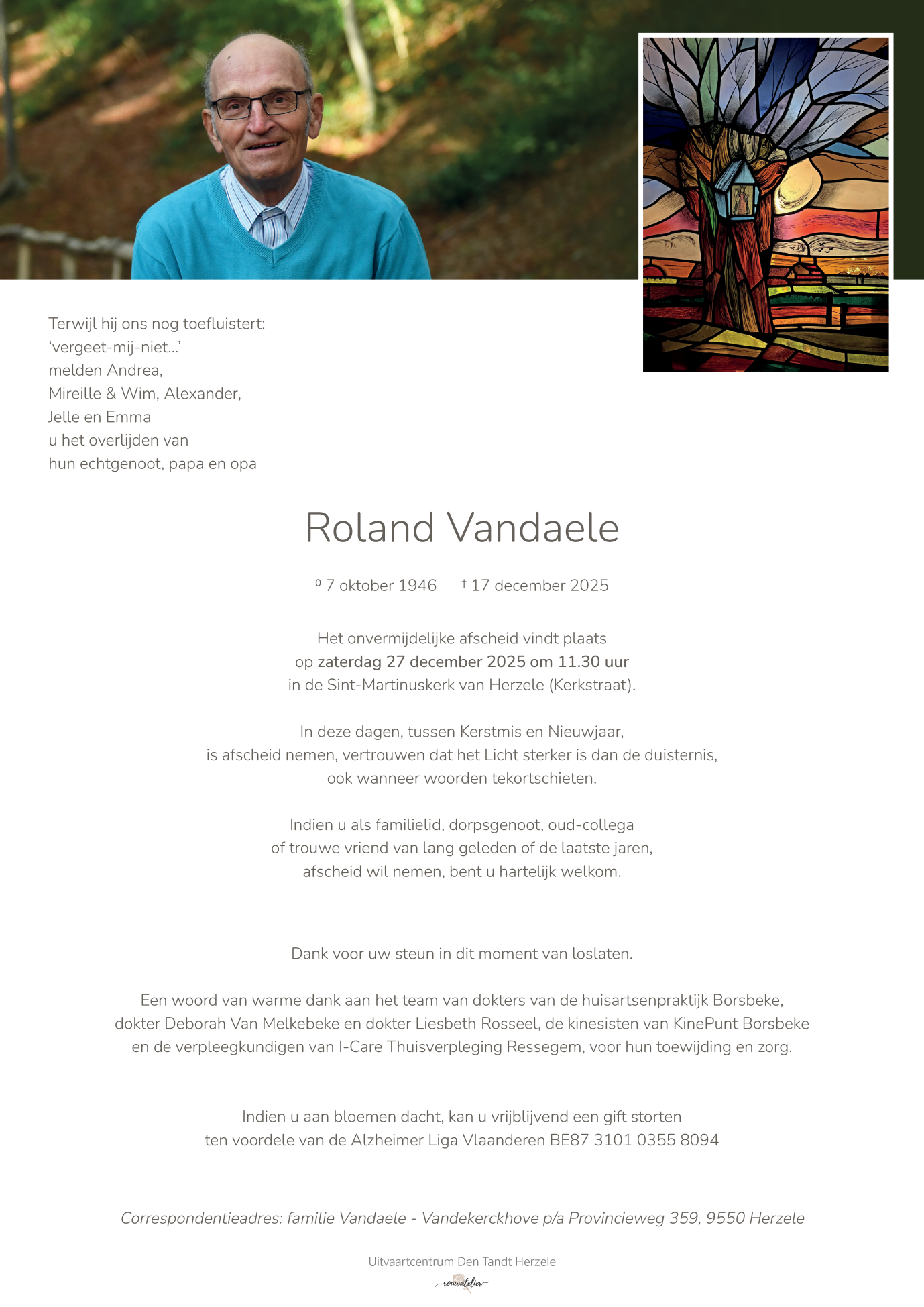 Overleden te Ressegem (9551) op woensdag 17 december 2025 op 79-jarige leeftijd