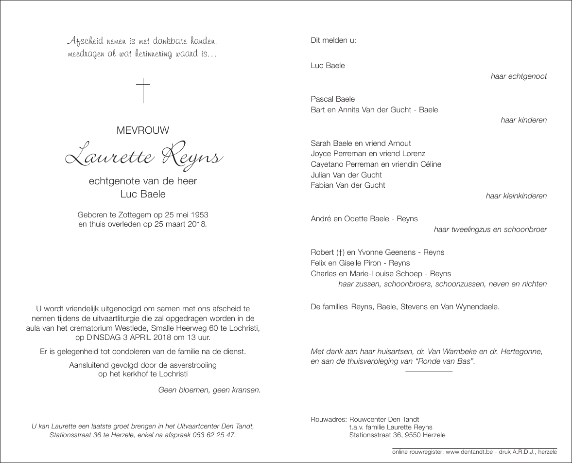 Overleden te Zottegem (9620) op zondag 25 maart 2018 op 64-jarige leeftijd